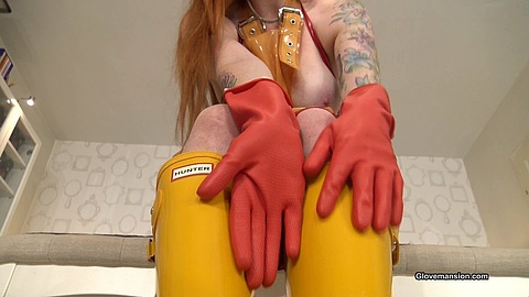 Zara is looking so sexy in her latex apron, rubber Hunter boots and rubber gloves! This sight will surely get your heart racing and your cock rock hard. She loves to tease you as she instructs you to jerk off and cum on her gloves and boots.
